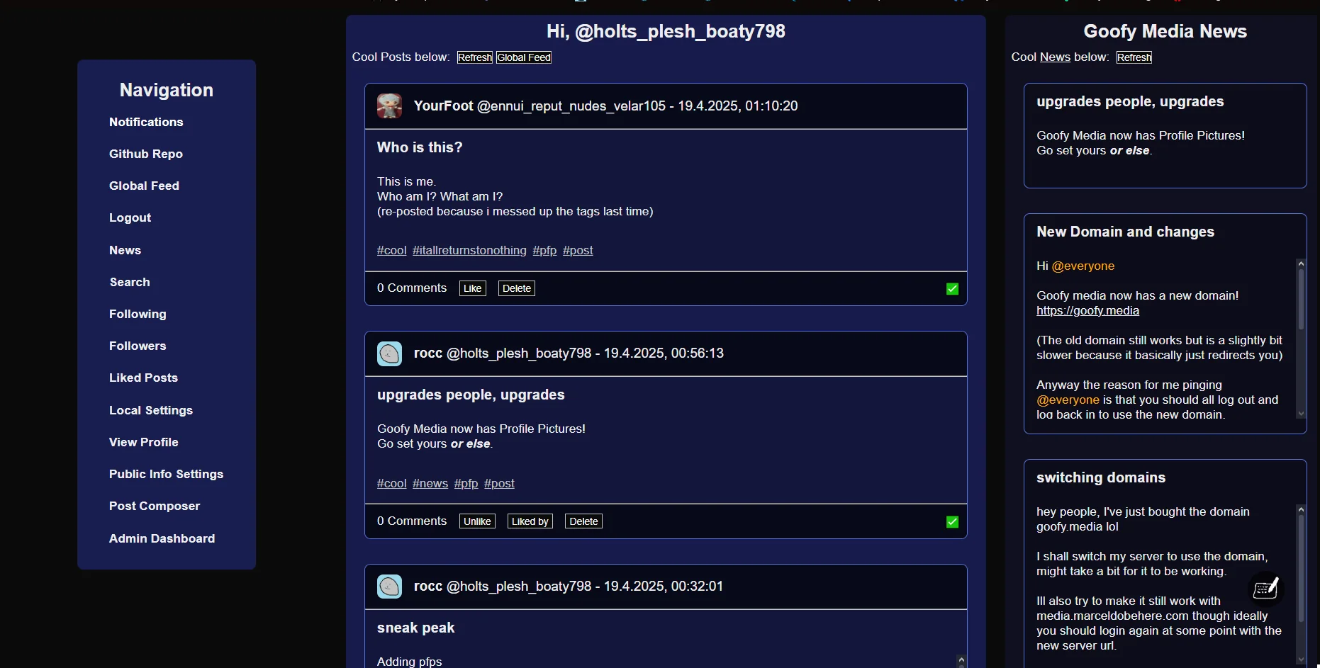 This is a text based Social Media Website I am working on. It is based on the decentralized authentication system from Goofy Chat v2.